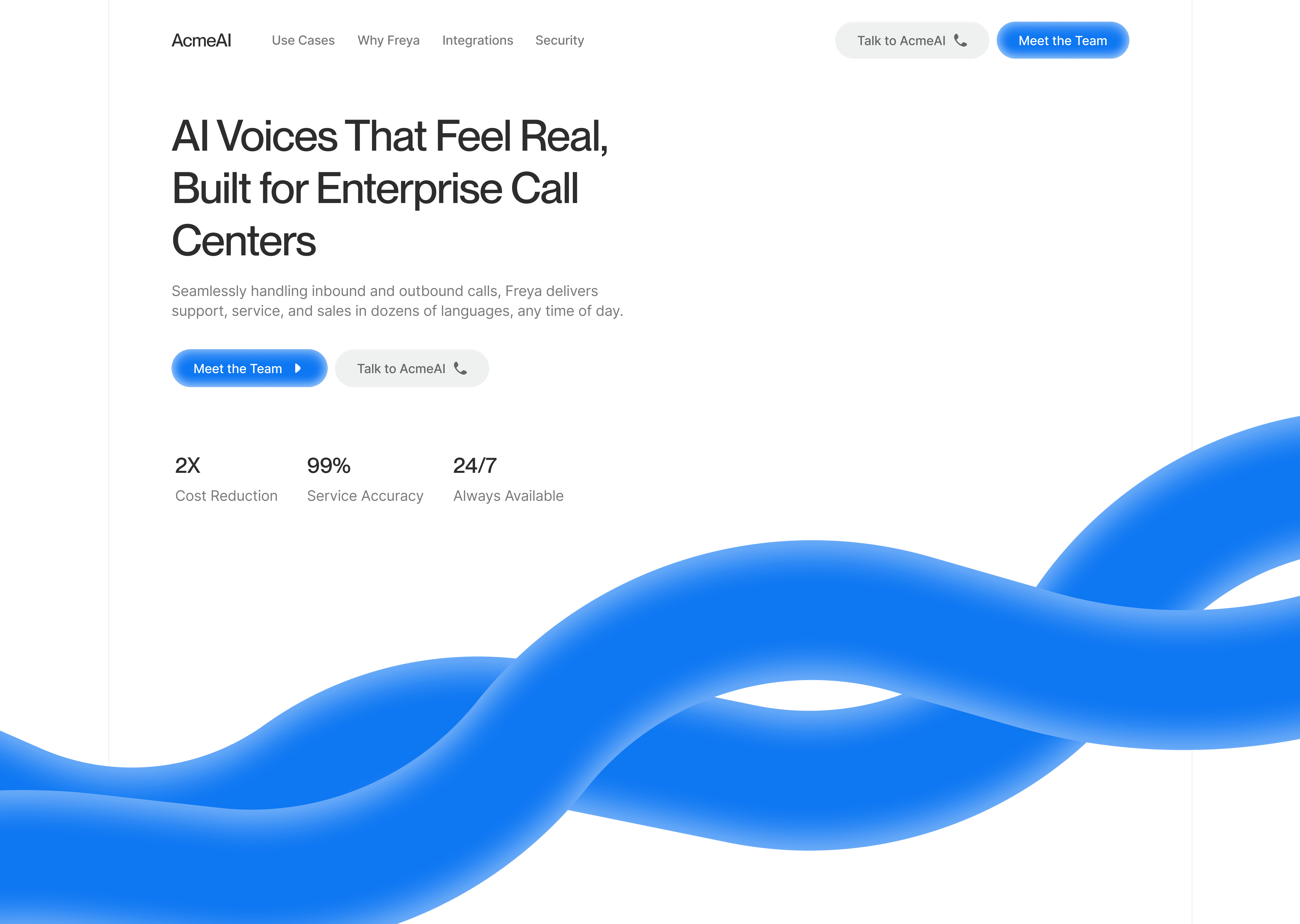 Seamlessly handling inbound and outbound calls, AcmeAI delivers support, service, and sales in dozens of languages, any time of day.
